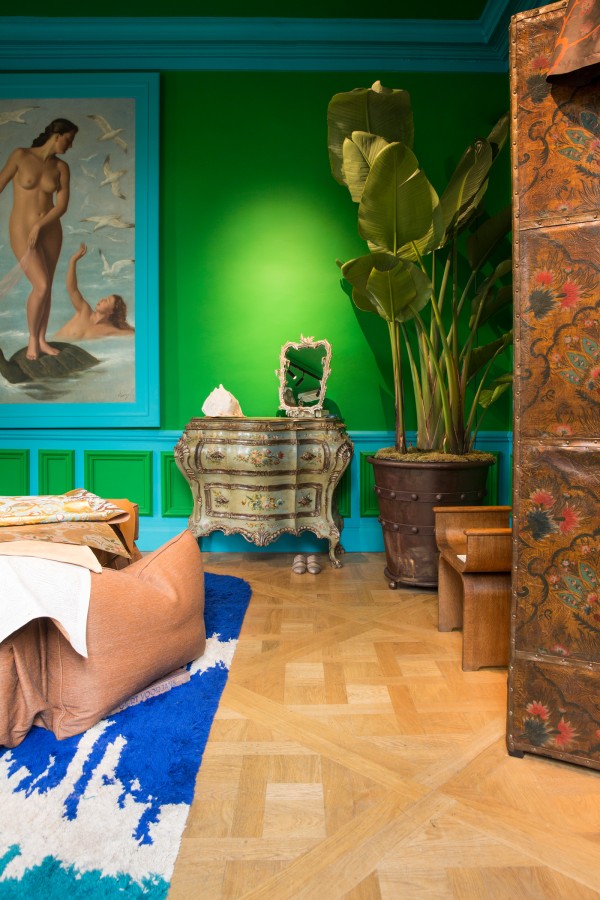 For the 2017 edition of AD Intérieurs held at La Monnaie de Paris, Voorjans imagined a dressing room-like setting reminiscent to some of Balthus’ paintings like "Japonaise au miroir noir" and "La chambre turque", but with the grandezza of Palazzo Valguarnera Gangi’s ballroom as featured in Luchino Visconti’s Il gattopardo. With the Parisian apartment of the great ballet dancer and choreographer Rudolf Nureyev as a source of inspiration.