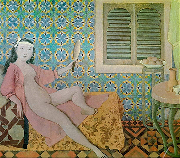 Constantinople is inspired by Islamic tile art and the evocative palette of a renowned Balthus painting. This luxurious design, available as both fabric and wallpaper, merges timeless artistry with the natural elegance of linen.