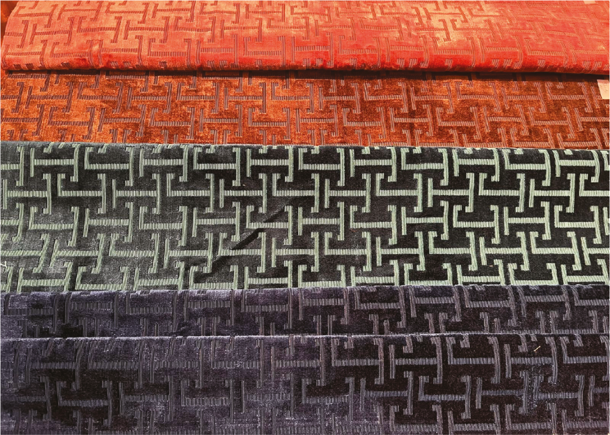 A Tribute to Legacy and Design,‘Jim’ is more than just a fabric —it’s a bold homage to Jim Thompson’s legacy, reimagined by Gert Voorjans. This cut velvet creation features interlocking "J" and "T" motifs, blending heritage with modernity in a striking, rhythmic pattern.