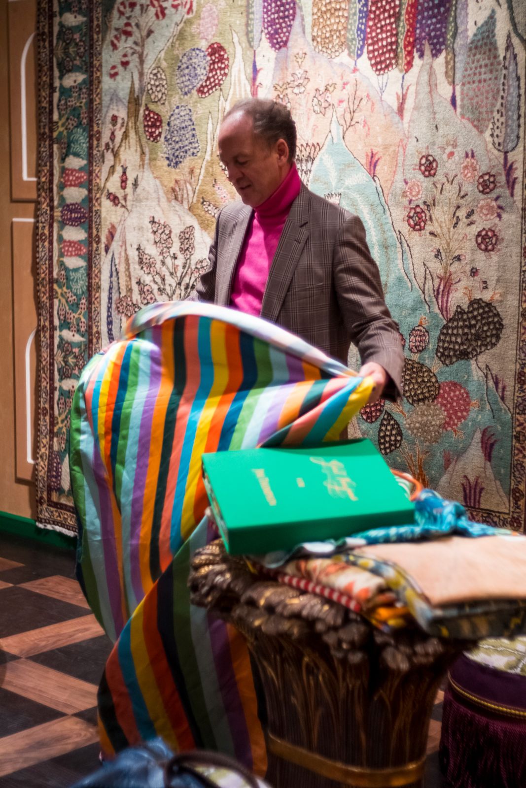 This contrast created a unique space: a middle-eastern atmosphere where the tree of life originated from, combined with an “atelier”-feeling where creativity and work come together. For the creation and curation of this room we have worked with a range of our esteemed suppliers and artisanal artists. From antique carpets to modern pieces of art, from bespoke lighting to beautiful oak and walnut parquetry and exquisite marble slates direct from the quarry. Or “A magical roomscape to ignite our imaginations, fuel our dreams, and enhance our realities”.