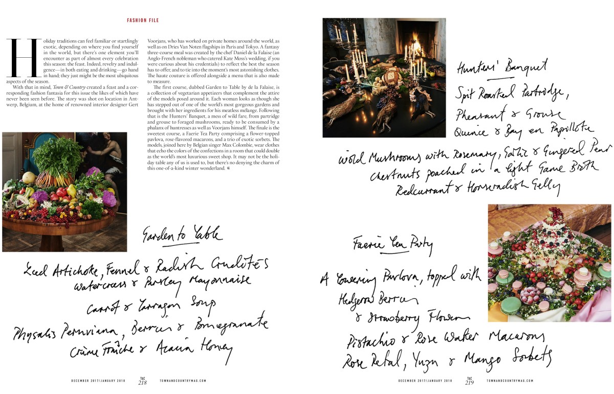 With that in mind, Town & Country created a feast and a corresponding fashion fantasia the likes of which have never been seen before. The story was shot on location in Antwerp, Belgium, at the home of renowned interior designer Gert Voorjans, who has worked on private homes around the world, as well as on Dries Van Noten flagships in Paris and Tokyo.