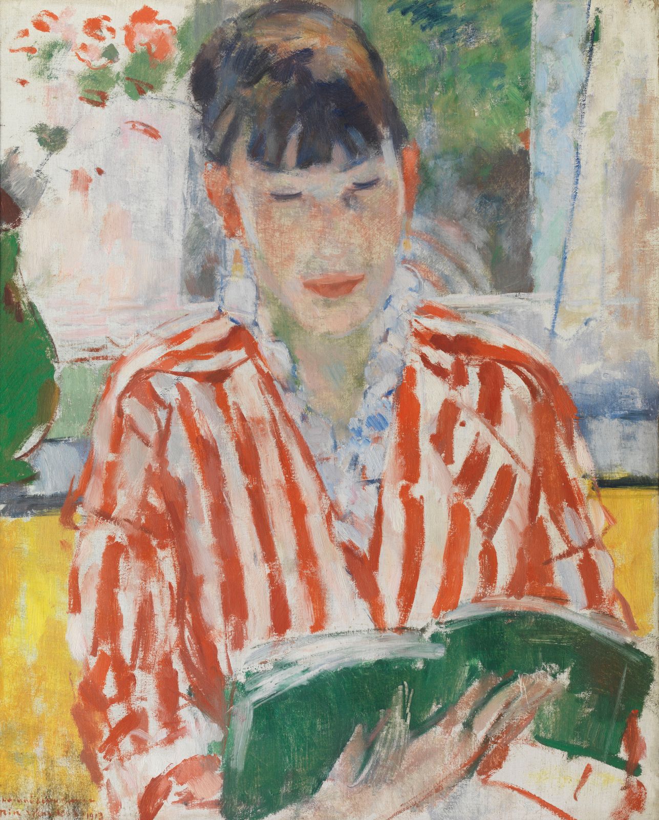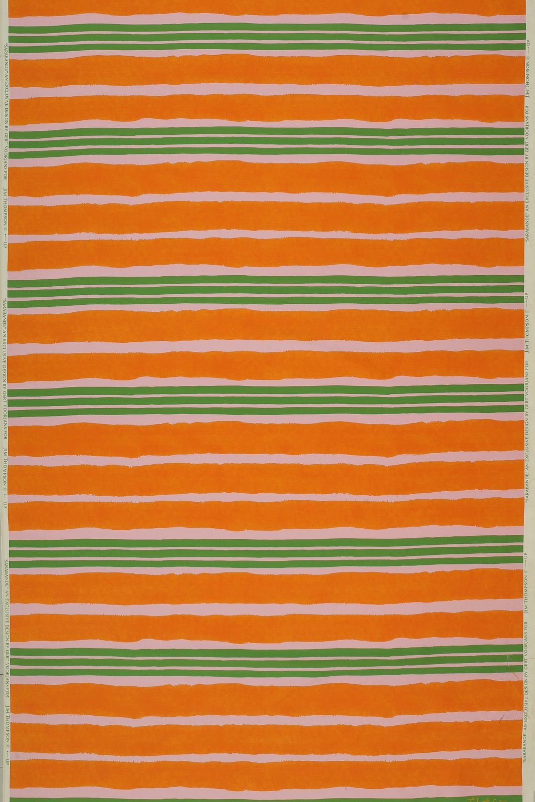Sarabande is named for the lively Baroque dance in triple meter. Full-width brushstroke stripes that are reminiscent of expressionist paintings are printed in saturated colours on Jim Thompson’s classic one ply textured handwoven silk.